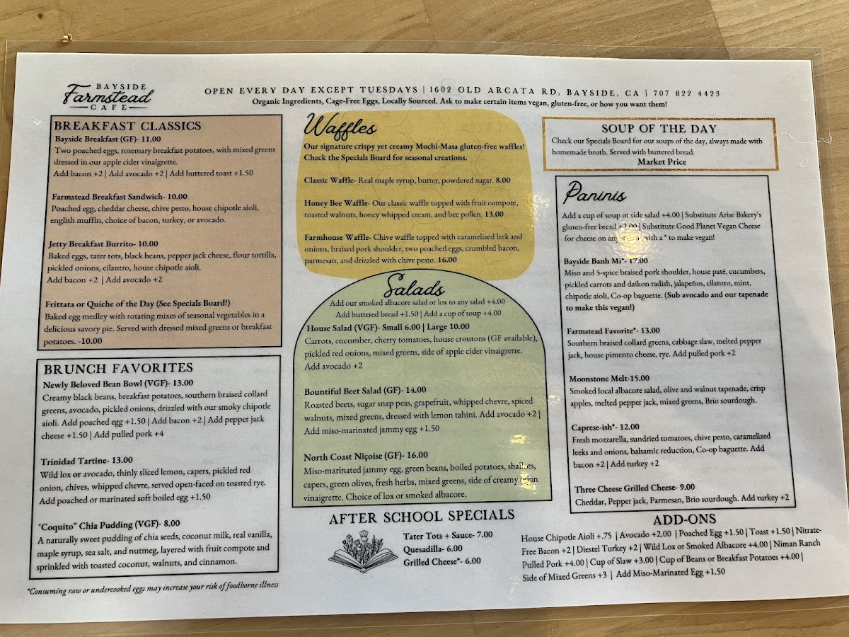 Welcome to Bayside Farmstead Café, a delightful gem nestled in Bayside, CA. This charming café specializes in a diverse and delectable menu, perfectly curated to cater to various dietary preferences without sacrificing flavor. Start your day with their Bayside Breakfast & Brunch offerings, featuring highlights like the tantalizing Farmstead Pulled Pork & Potato Hash and the mouthwatering Jetty Breakfast Burrito, each crafted to create a harmony of flavors.